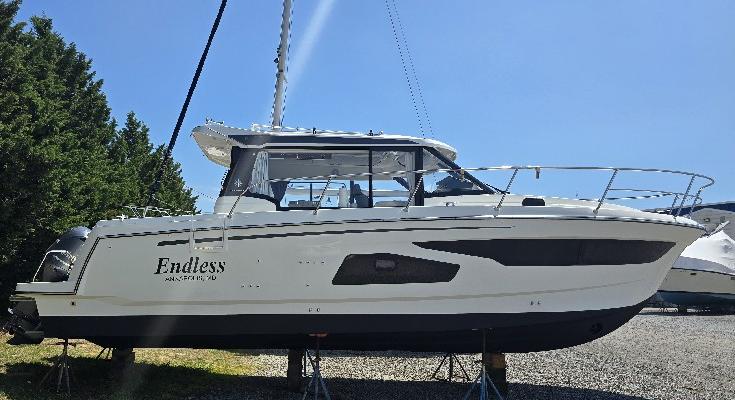 Twin Yamaha outboards w/ <90 hours. AC/heat three zones. Generator, Windless, Bow thruster. One level living/boating w/ galley area up, cooktop, microwave, two refrigerators. Fresh hot and cold-water head w/ enclosed shower. Custom mattress main stateroom. Fusion sound system. Garmin chartplotter, autopilot, marine radio. Underwater lights. Enclosed aft cockpit. Bottom painted 4/2025, waxed 5/2025. Great weekend cruiser! $318,000 410.409.5098, [email protected]. More info/photos: www.tinyurl.com/34jeanneau