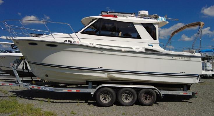 Pre-owned, excellent condition. New custom-fit trailer, Volvo Penta Diesel 200HP (585 hrs.), digital gauges, GPSMAP, Solar Panel, Heat/AC, full galley, full head. $135,500/OBO (#U-395) Rudy Marine, 302.945.2254, www.RudyMarine.com