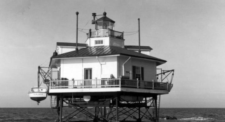 Holland Island Bar Light, no longer standing, was built in 1889 at a cost of $35,000.
