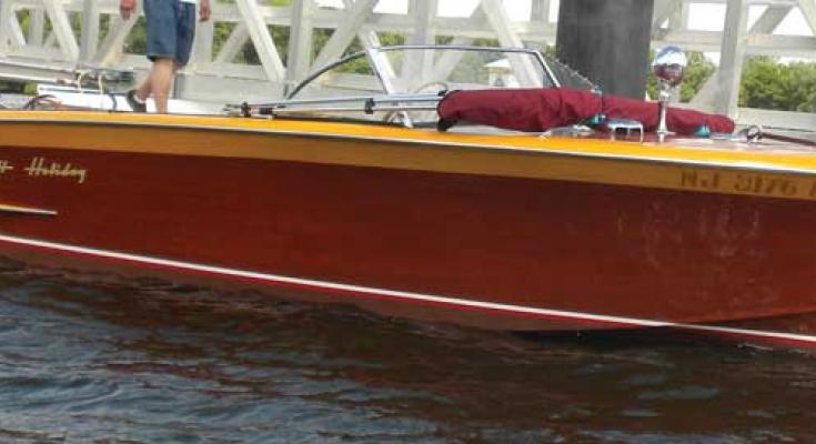 Barnegat Belle is a 1946 Gar Wood 22-foot, six-inch runabout. She shines with her mahogany hull and deck polished to a smooth and glossy varnished finish.
