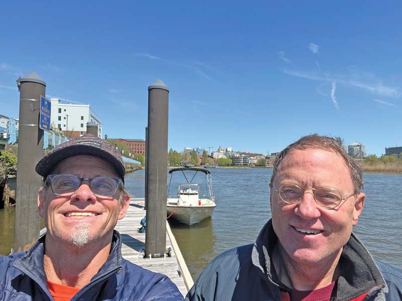 A few turns up the Christina we seem to have transited a time warp. We find ourselves confronted with a 17th-century sailing vessel, complete with monkey-like crew scurrying up and down the rigging, maintaining and repairing. It turns out to be a replica of the Kalmar Nyckel, the Tall Ship of Delaware. The original ship voyaged transatlantic in 1638 to establish the colony of New Sweden. It reminds us of just how bold our ancestors were. We gawk and wave as we slowly pass.