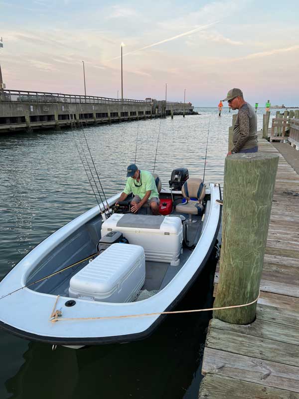 “So…. I just talked Zach (Ditmars) into hauling the skiff to Kiptopeke tomorrow eve, crash in an Airbnb, fish the cement ships Thursday, then drive home. Eric Packard will probably go, too. Want to join in the adventure???” How can you say no to that?
