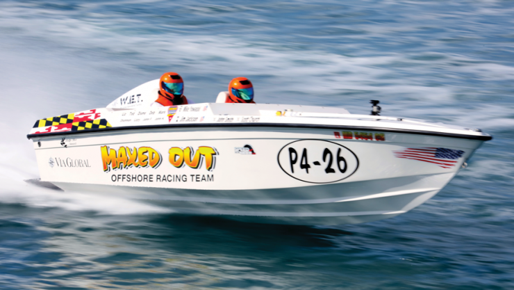 Maxed Out Joker V-bottom with a 600-hp engine. The Maxed Out Motorsports team is owned by Jim Jackson who throttles while Yowaiski drives. For photos and the full race results, click to
